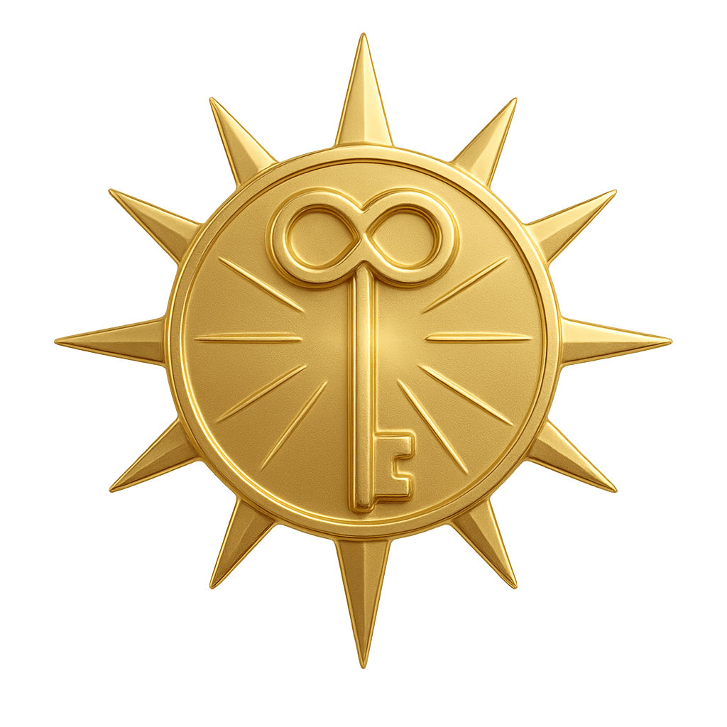 Watermark: Universal Master Key glyph (final codex version, crystalline glow, transparent background).