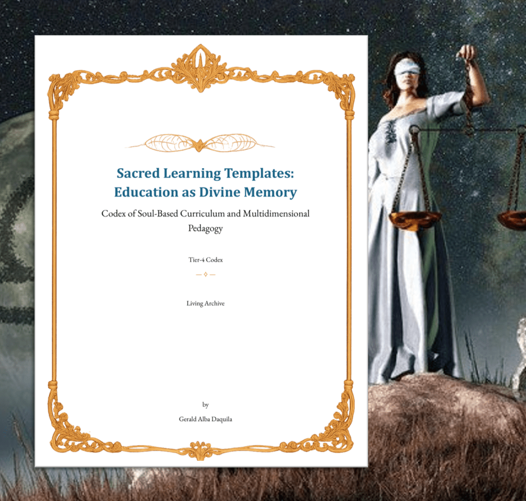 This Codex Scroll, Sacred Learning Templates: Education as Divine Memory, was received and authored through Gerald Daquila in direct attunement with the Akashic Records under the authority of the Great I AM. It forms one of twelve foundational transmissions in the Crystal Codex Ring, anchoring the Light School architecture of the New Earth Temple. The scroll is released in service to the divine reclamation of learning as remembrance, encoded through soul archetypes, elemental intelligence, and the Oversoul’s teaching lineages.