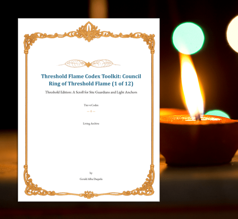 - Council Ring of Custodianship: Ceremonial Templates and Oaths – A parallel council archetype that informs the Threshold Flame’s vows and responsibilities.