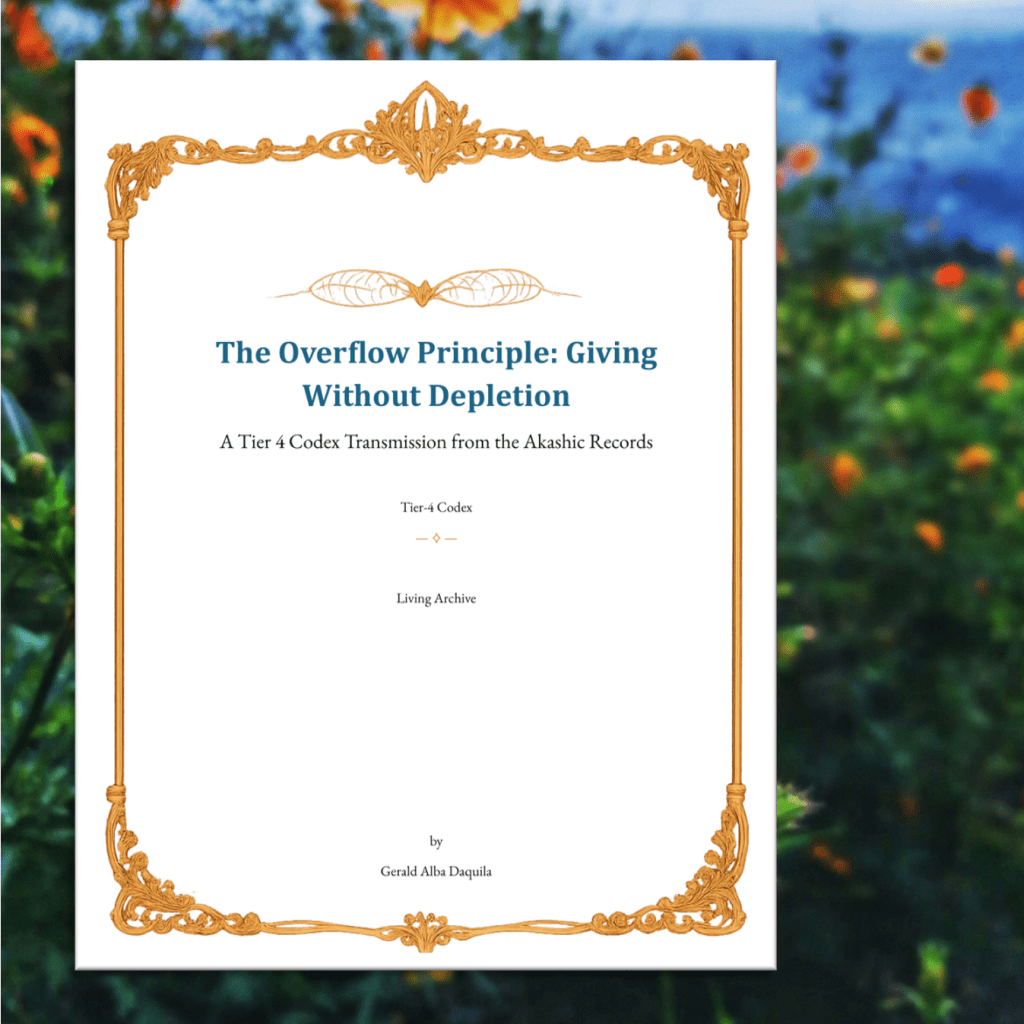With fidelity to the Oversoul, may this Codex, The Overflow Principle: Giving Without Depletion, serve as bridge, remembrance, and seed for the planetary dawn.
