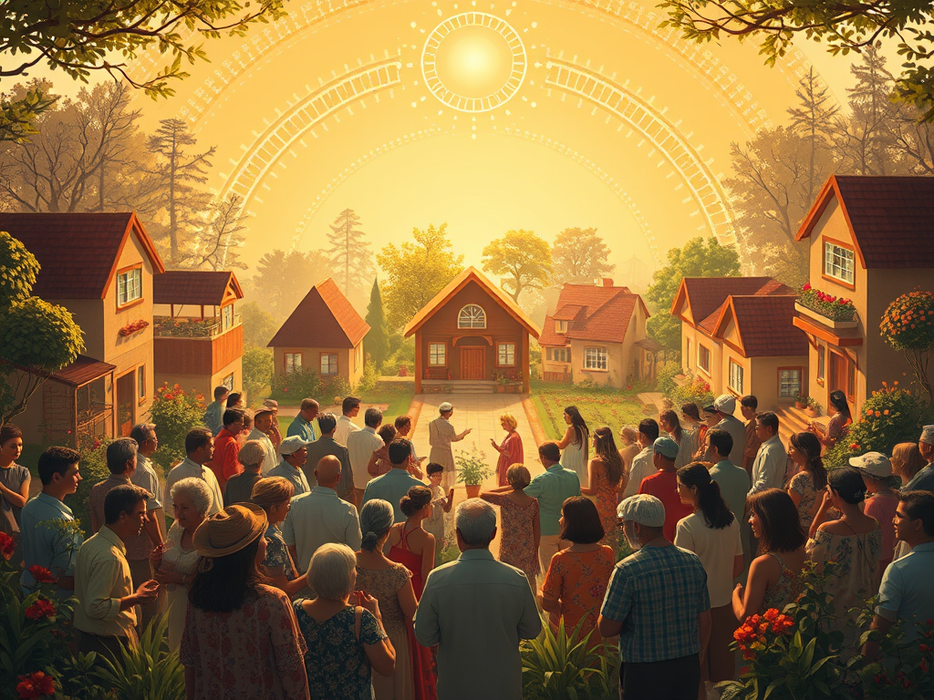 - How: Neighboring households entrain resonance by creating shared fields—gardens, temples, learning circles.