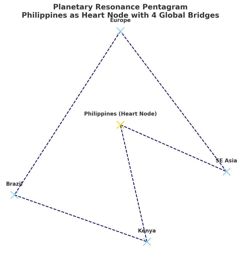 Diagram (top): The Philippines as Heart Node radiates Overflow through a planetary resonance star.
