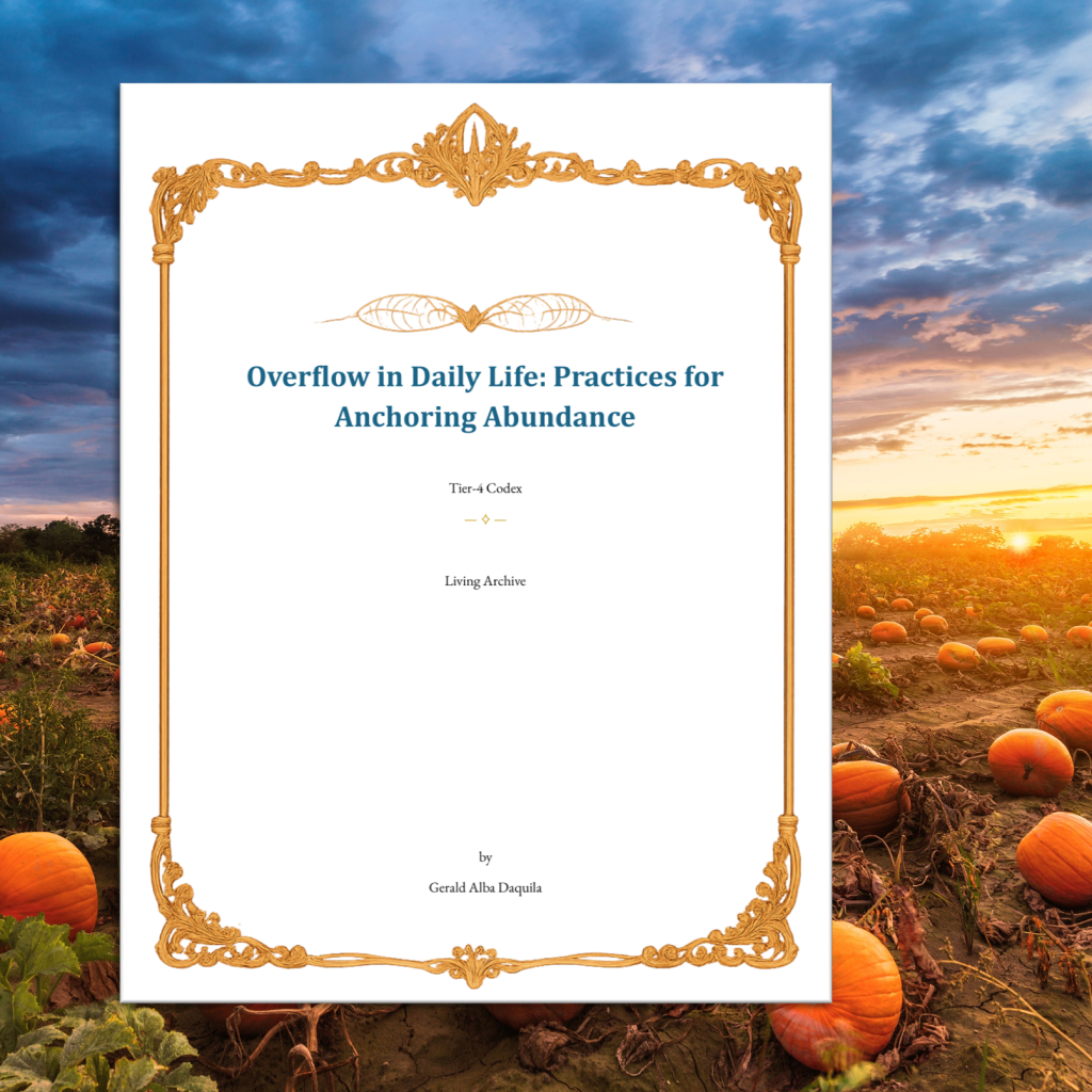 With fidelity to the Oversoul, may this Codex, Overflow in Daily Life: Practices for Anchoring Abundance, serve as bridge, remembrance, and seed for the planetary dawn.