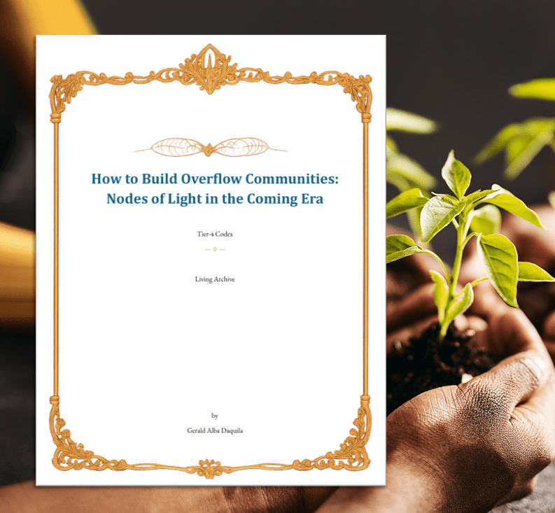 Beyond individual awakening lies bayanihan re-imagined — not merely cooperation, but frequency entrainment. When one heart rises, the circle amplifies. When one village stabilizes, the leyline hums clearer. Thus, each community becomes a resonant node of Overflow.