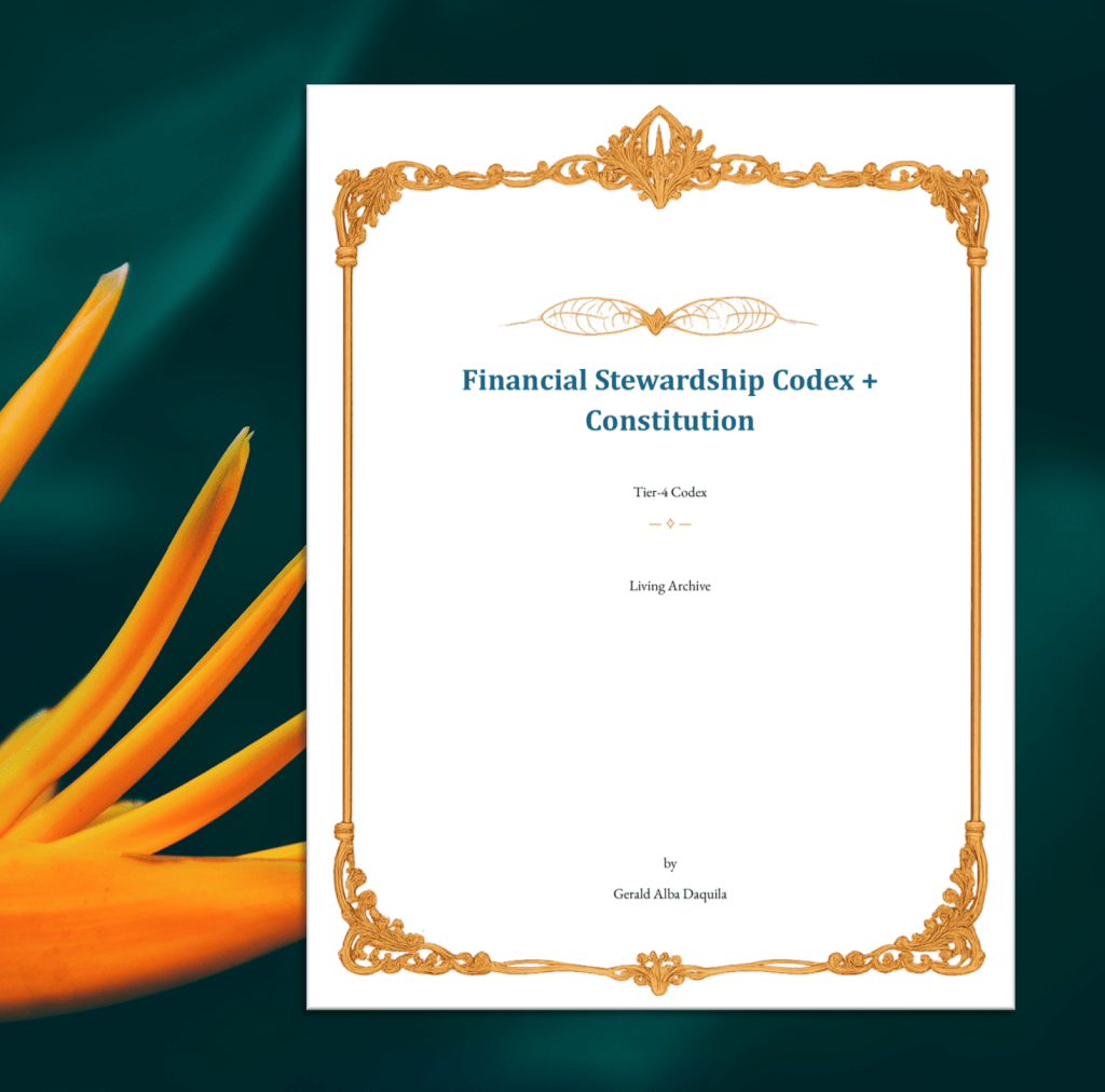 With fidelity to the Oversoul, may this Codex, Financial Stewardship Codex + Constitution, serve as bridge, remembrance, and seed for the planetary dawn.