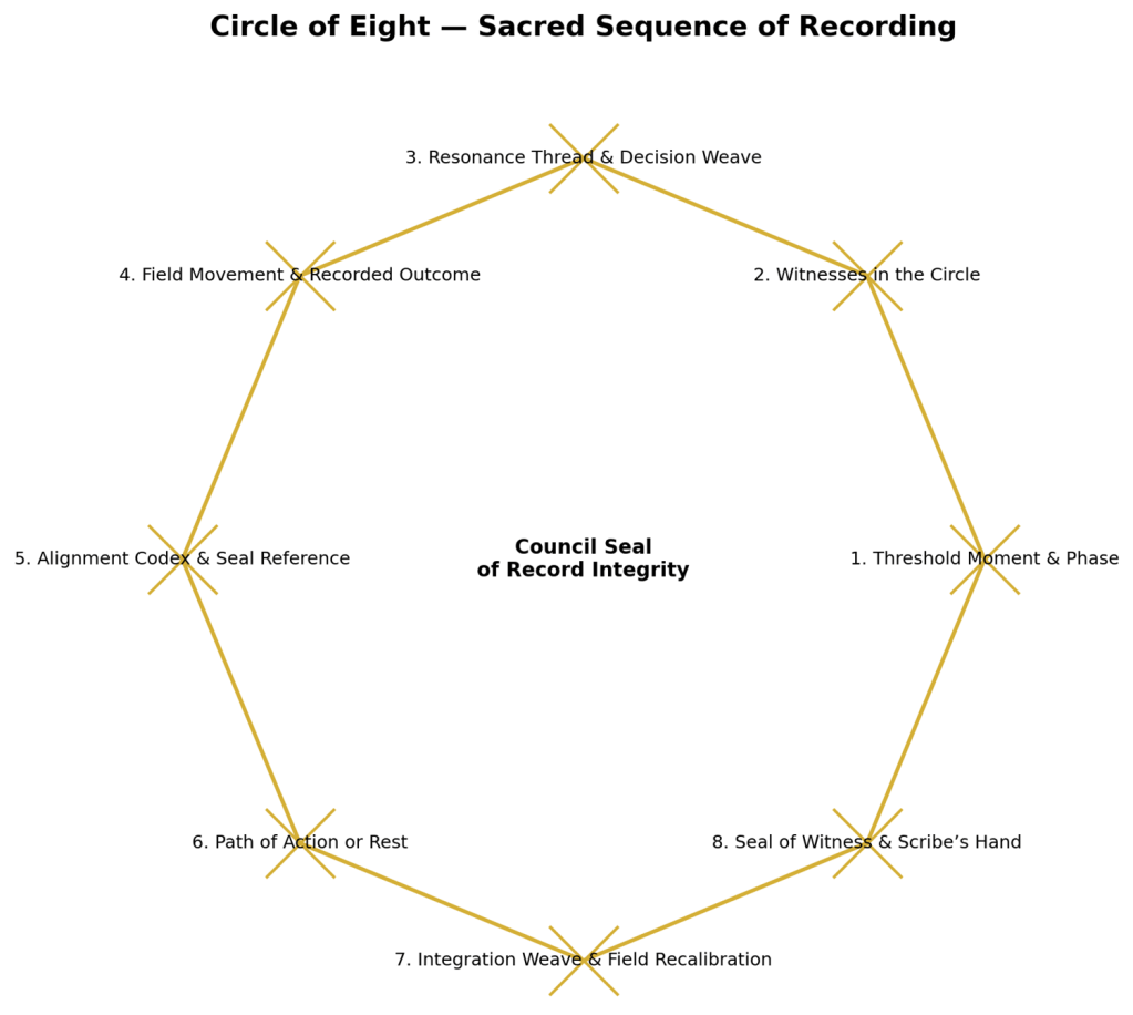 This scroll serves as a sacred documentation template to record decisions, agreements, milestones, and transmissions made by Threshold Flame-aligned vessels or councils. It replaces traditional board minutes or administrative memos with a more resonant, soul-led structure.