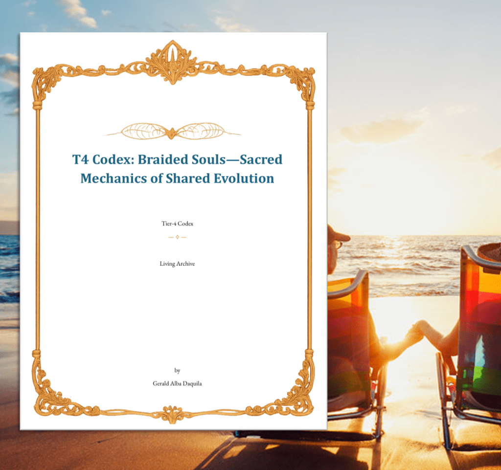 This Tier 4 Codex was received and transmitted through the Akashic Records by Gerald Daquila, under the authority of the Great I AM Presence, for the benefit of all beings in alignment with the Highest Good. Stewardship, sharing, or activation of this Codex requires conscious consent of all braided souls involved, and adherence to the Sacred Stewardship Guidelines herein.