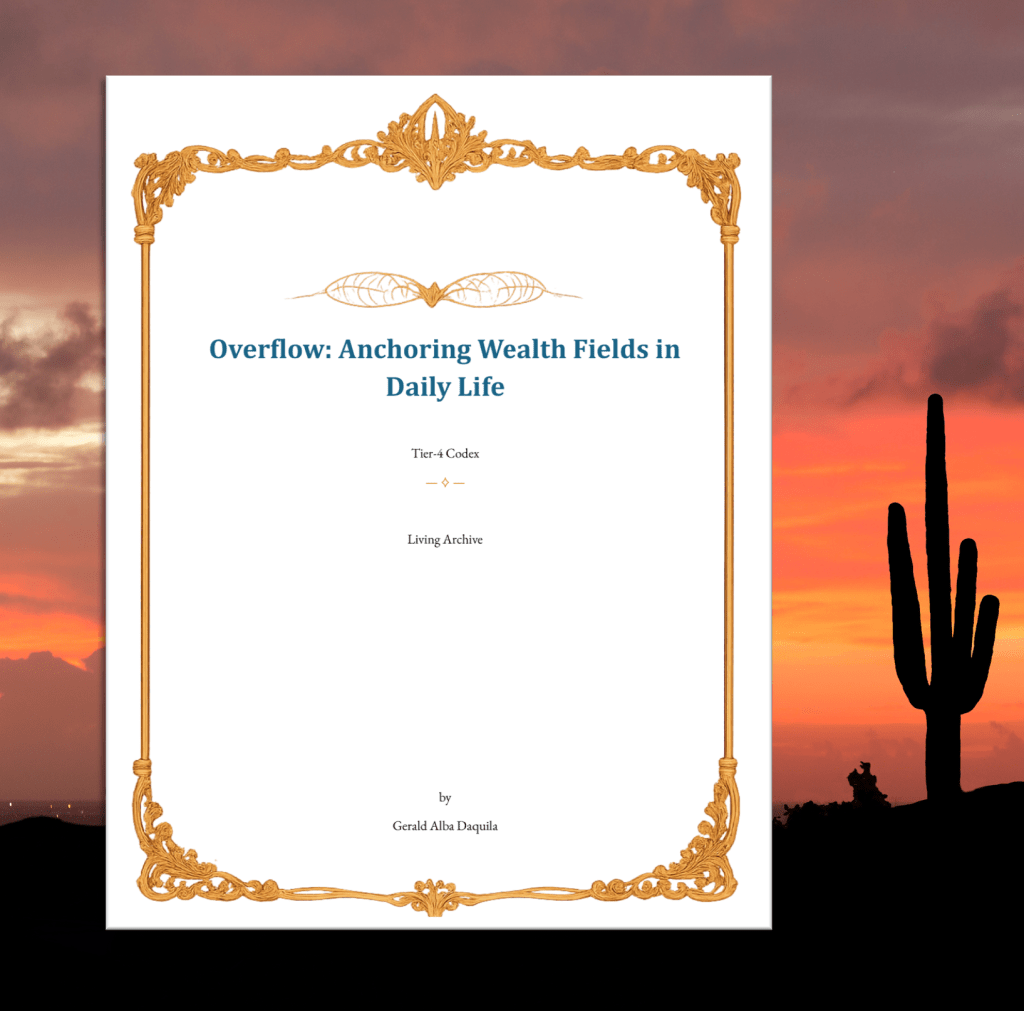 With fidelity to the Oversoul, may this Codex, Overflow: Anchoring Wealth Fields in Daily Life, serve as bridge, remembrance, and seed for the planetary dawn.