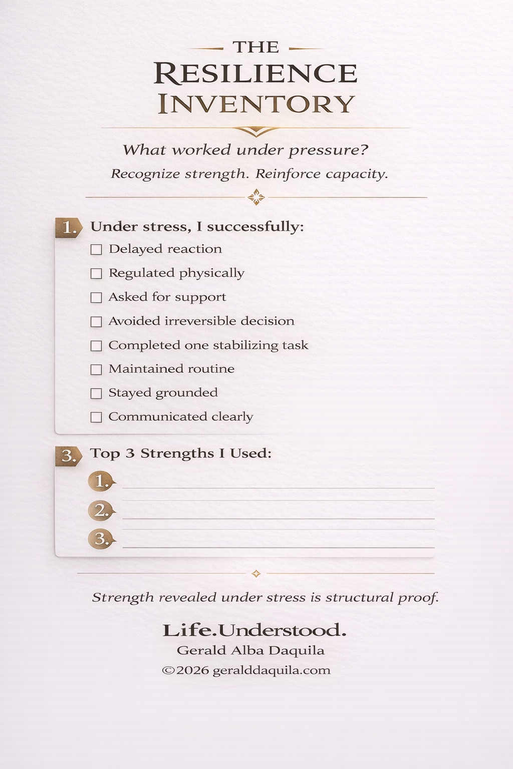 A structured reflection instrument to extract signal from destabilizing events. Separate facts from distortions. Identify what helped and what harmed.