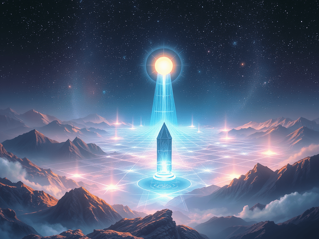 A crystalline light grid that mirrors Earth’s energy body, connecting sacred sites, mountains, rivers, and oceans in a vast lattice of life-force currents.