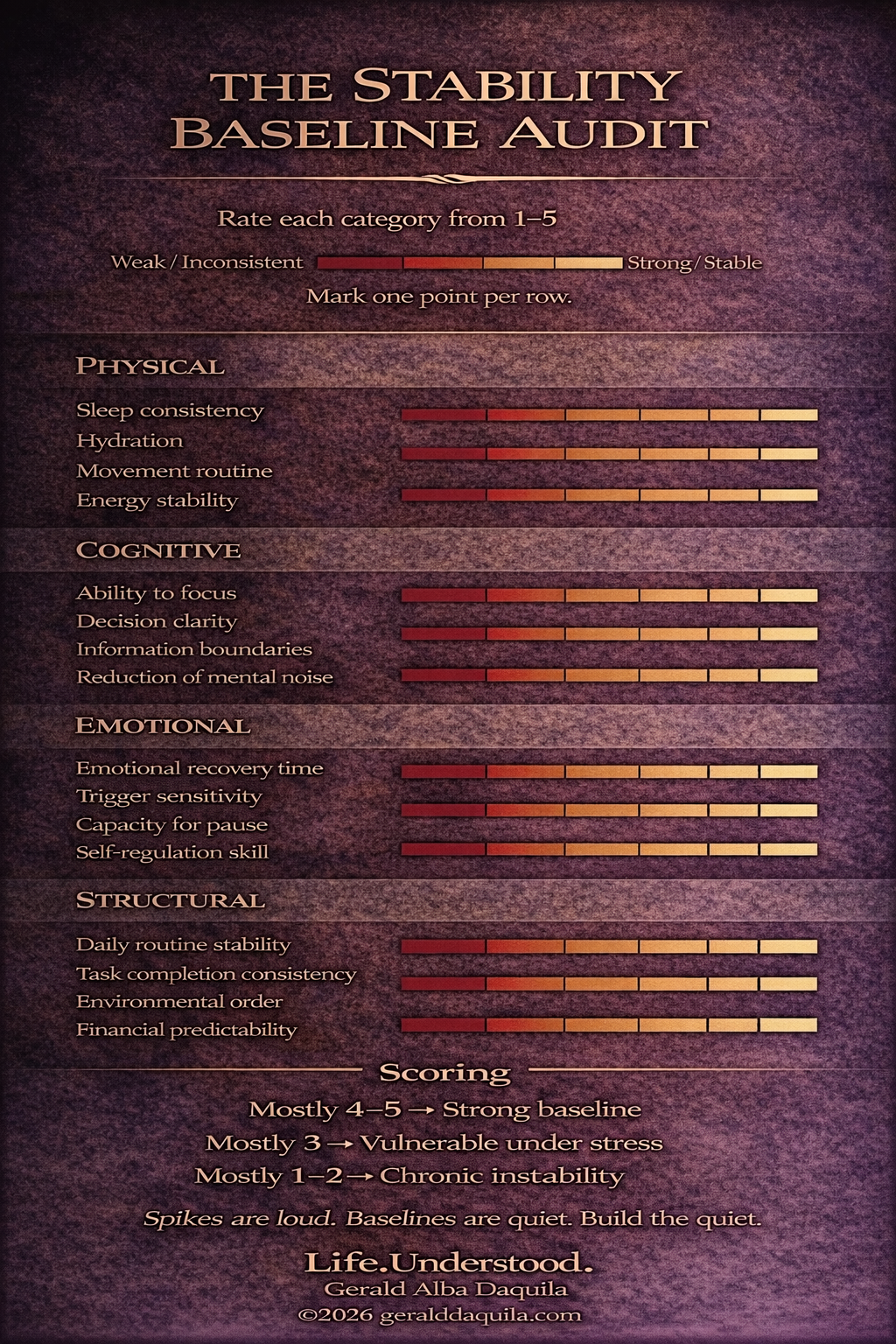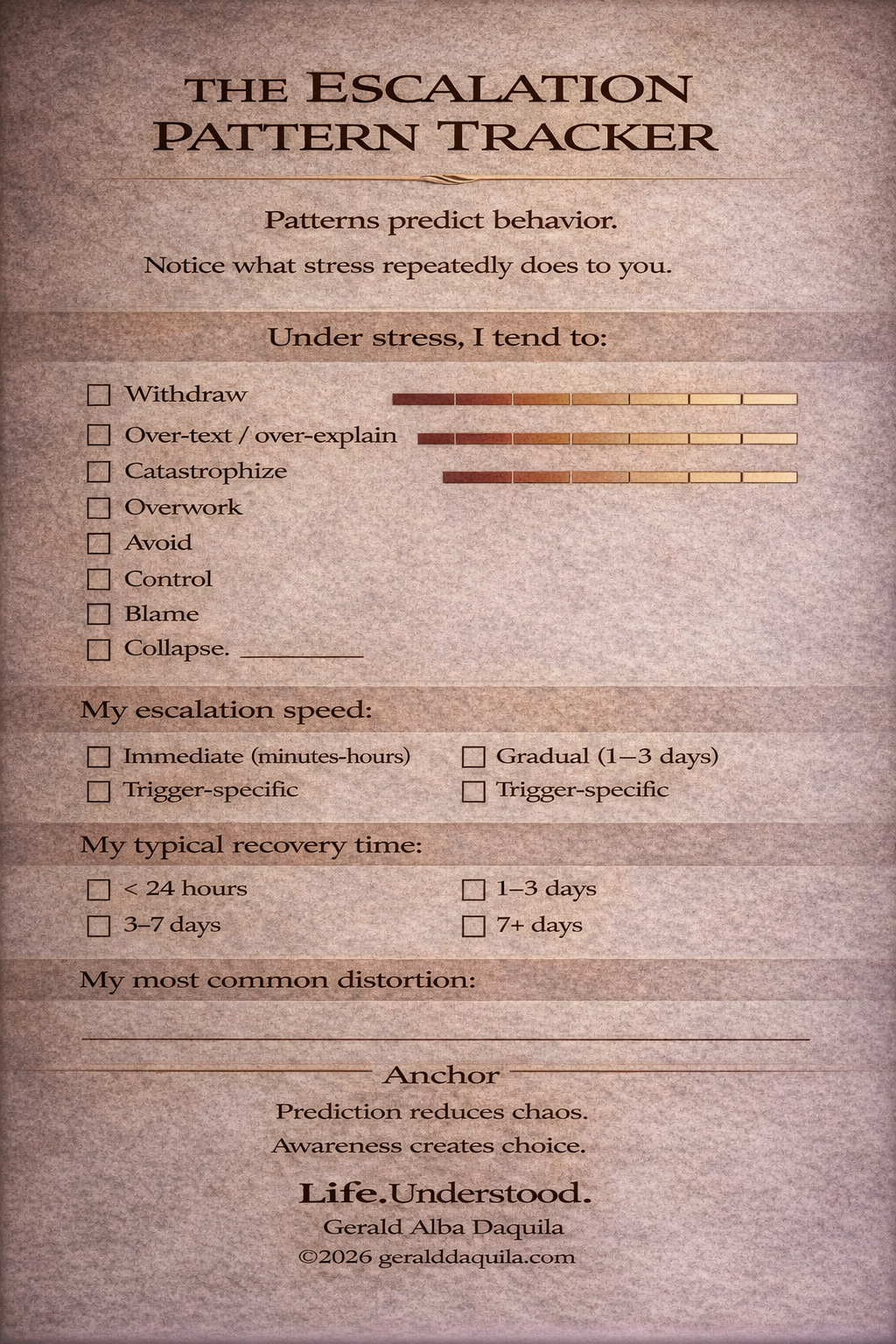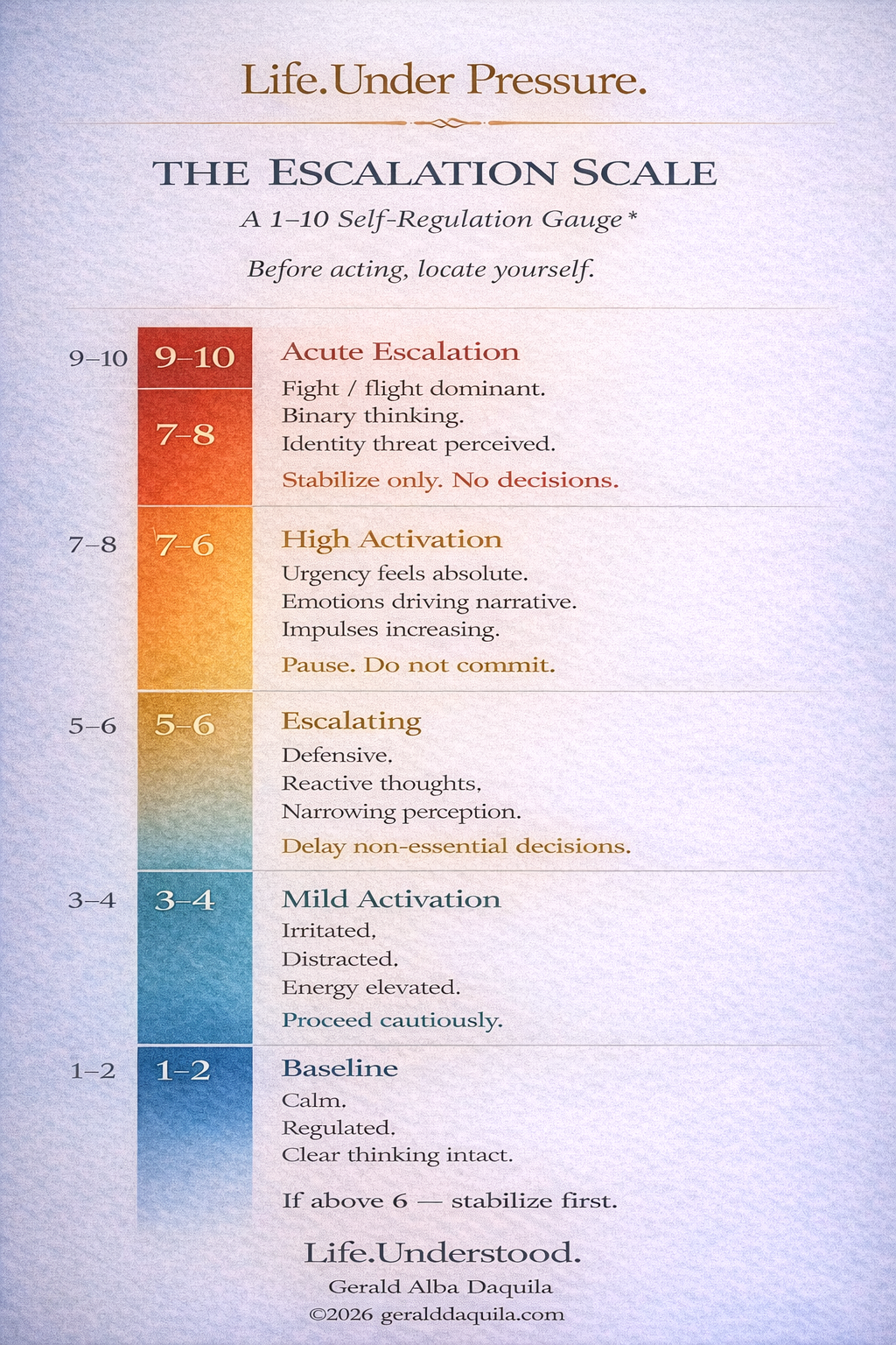 This measures your resting foundation, not your spike. This becomes the diagnostic companion to the Escalation Scale